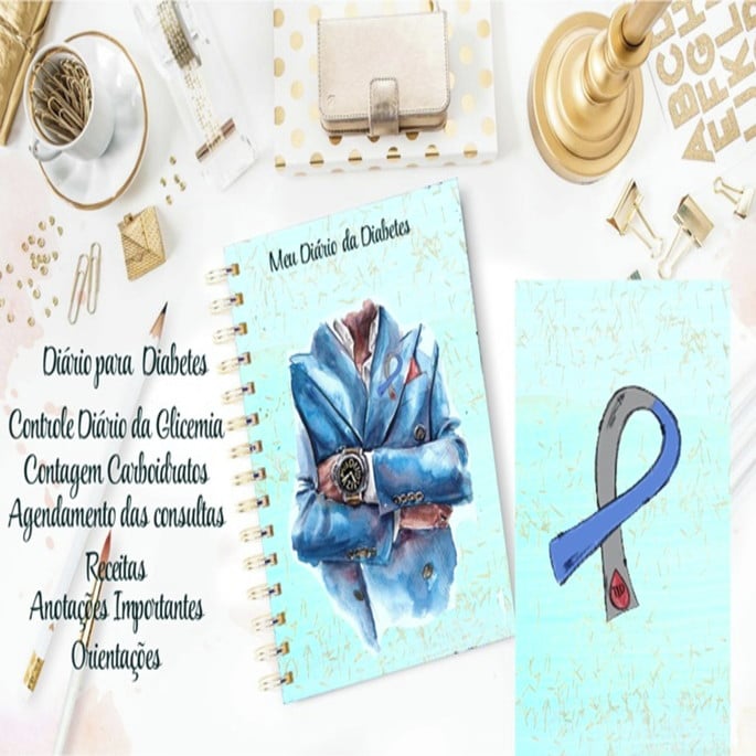 CONTÉM: 2 modelos de Capa e Contracapa + Miolo (controle diário da glicemia, contagem carboidratos, agendamento de consultas, receitas, anotações importantes, orientações. espaço para medições, etc)
