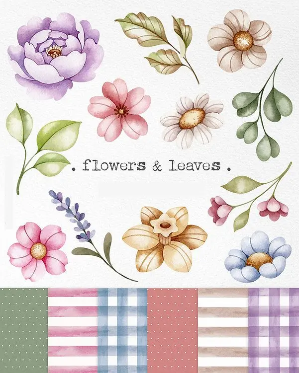 Com uma seleção cuidadosa de flores delicadas e folhagens variadas, este material oferece versatilidade para diversas aplicações visuais. Os elementos apresentam transparência, permitindo sobreposições e combinações criativas em seus projetos.