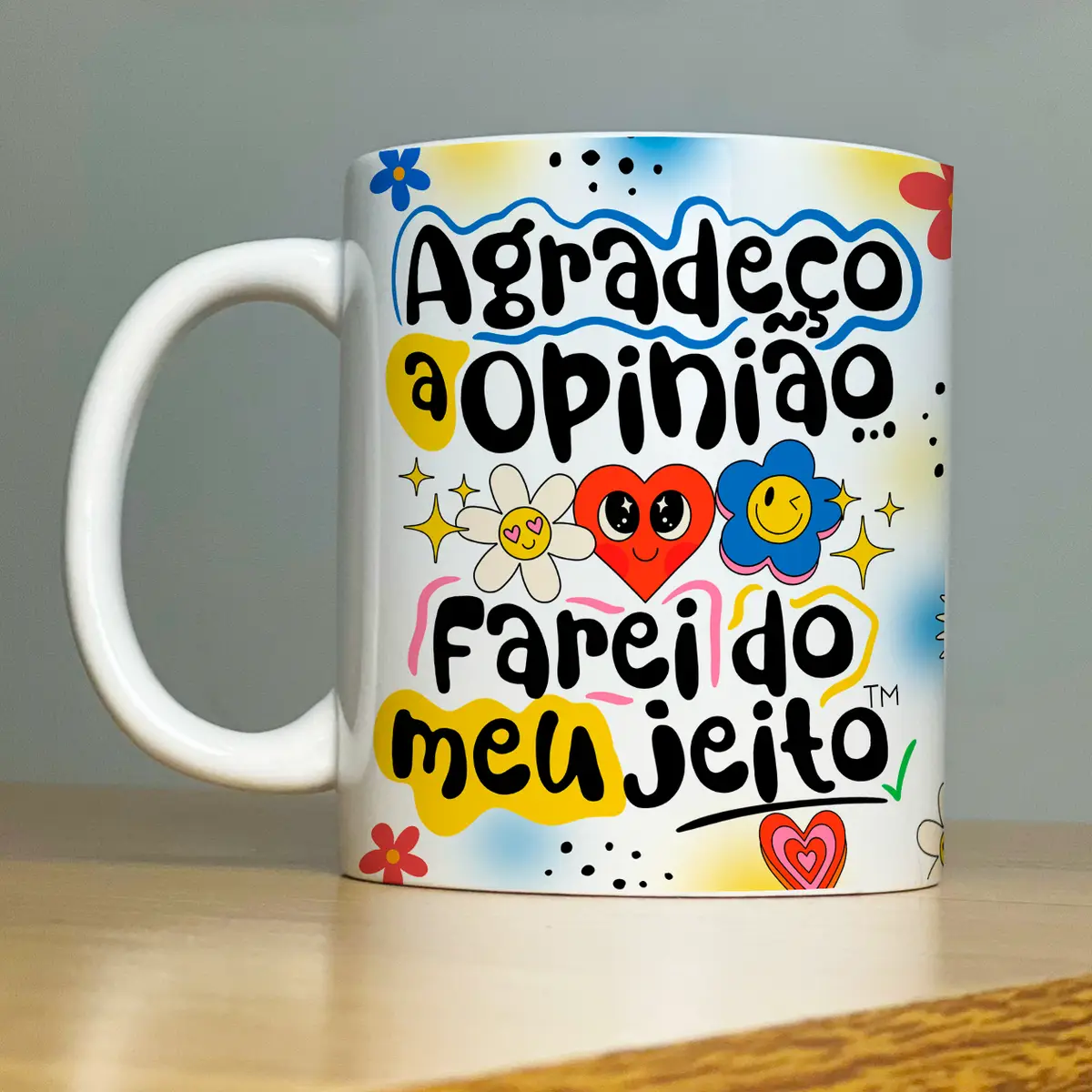 - Frase Caneca Agradeço a opinião, farei do meu jeito