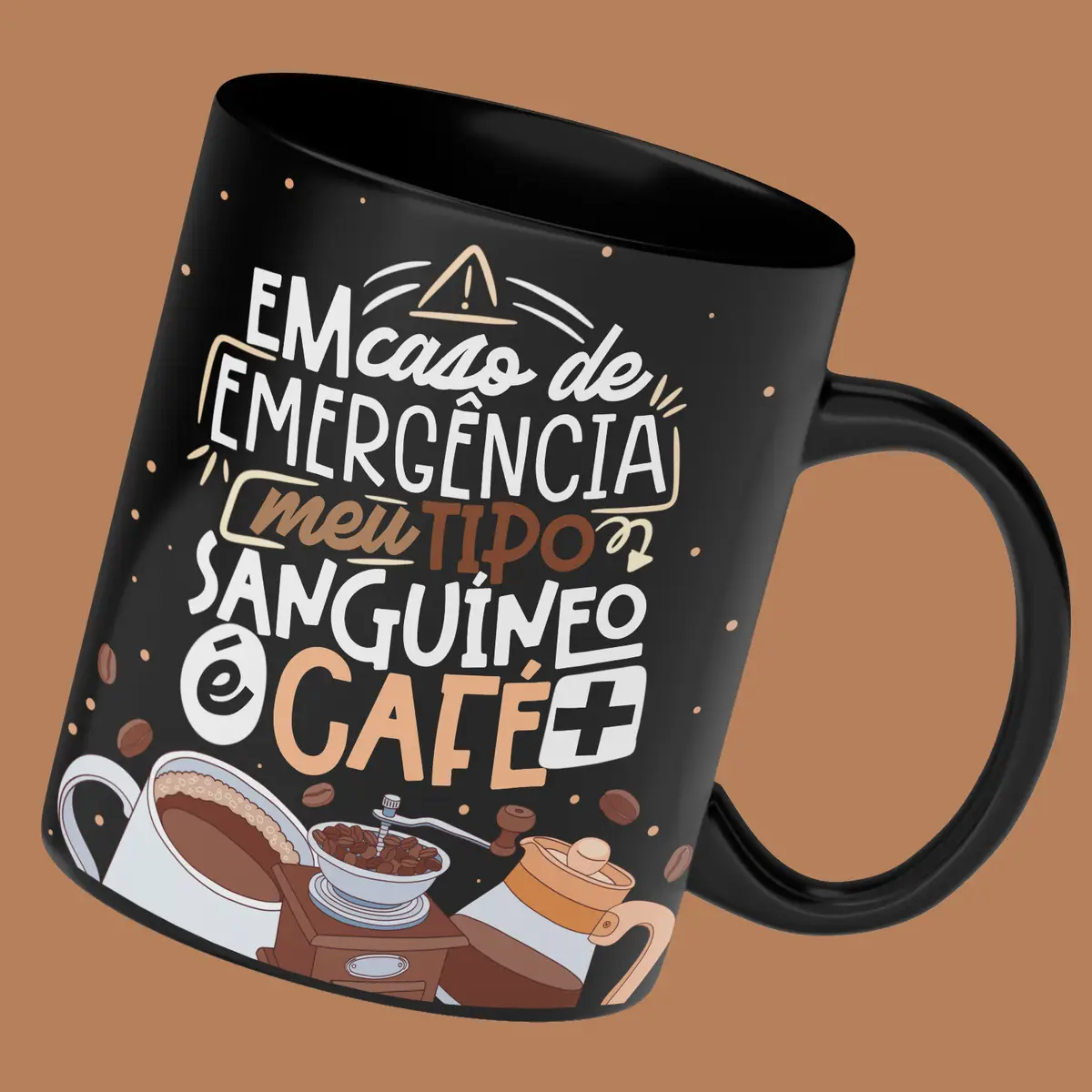 - Frase Caneca Em caso de emergência meu tipo sanguíneo é café+