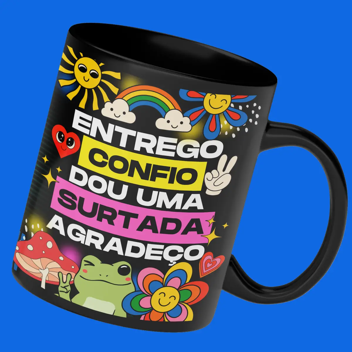 - Frase Caneca Entrego, confio, dou uma surtada, agradeço