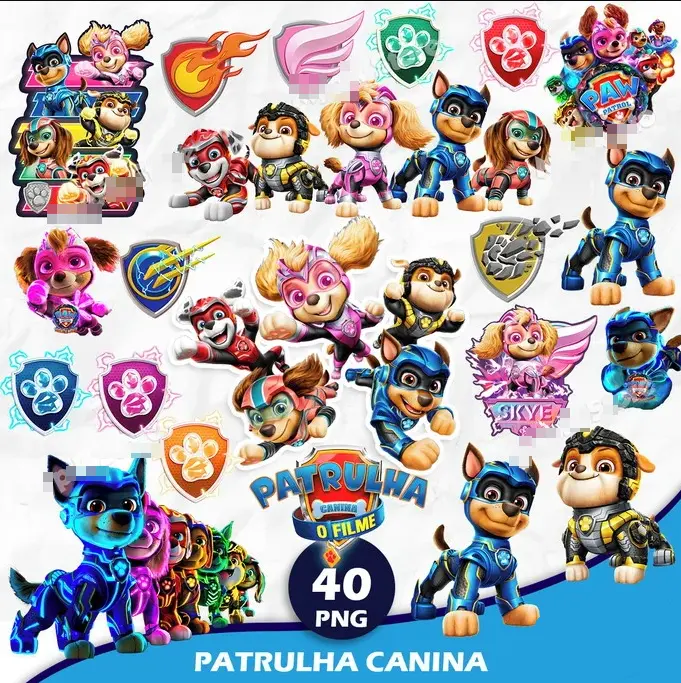 Kit digital Patrulha Canina com 40 elementos PNG em alta resolução para criar projetos personalizados únicos e encantadores!