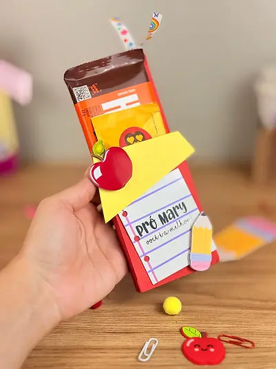 - Porta Chocolate Professores – embalagem criativa para tabletes e barrinhas de chocolate.