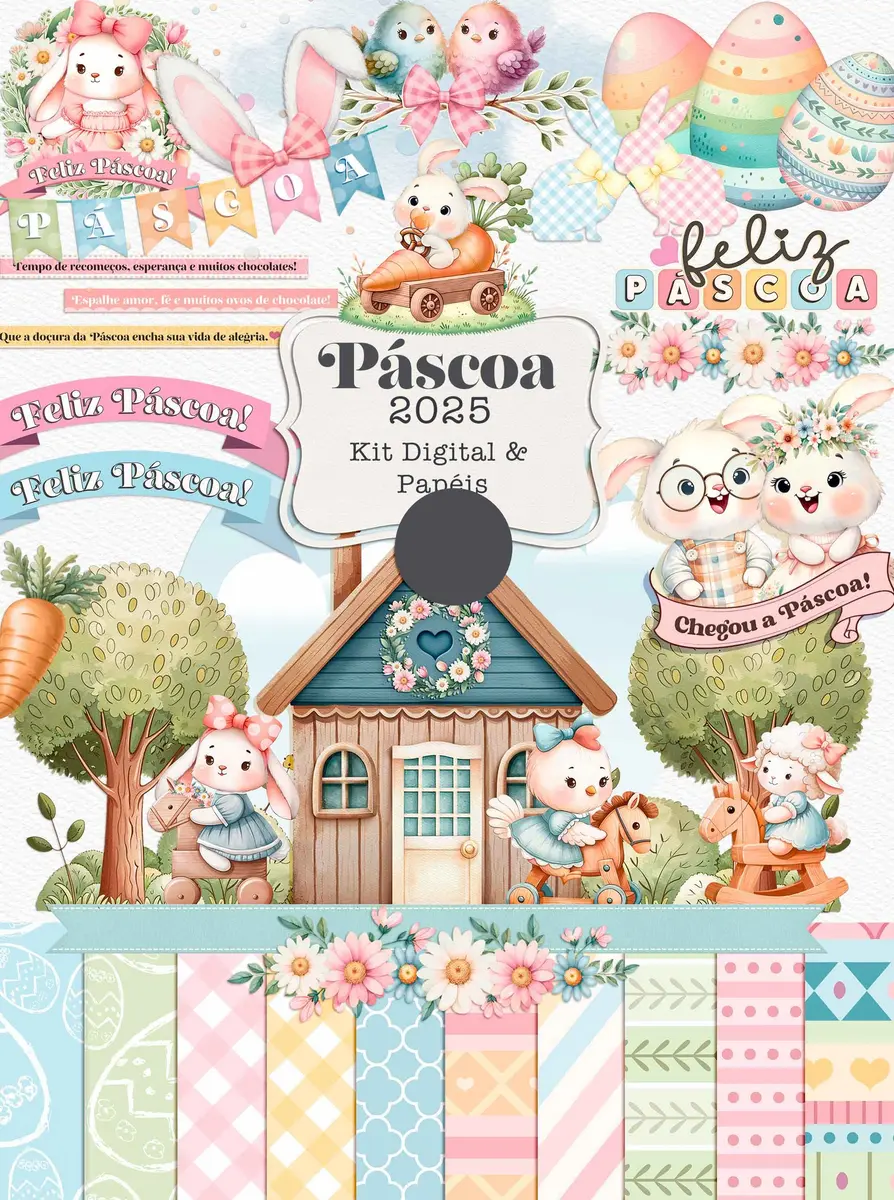 O Kit Digital Páscoa Coelhinhos em Png é uma escolha ideal para quem deseja elevar a qualidade de suas produções, assegurando que cada detalhe seja especial e cheio de charme. Surpreenda seus clientes com artes de alta qualidade e detalhes que fazem a diferença!