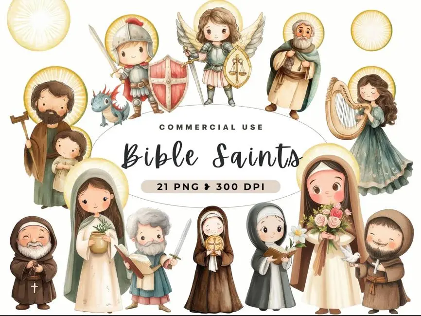 Kit digital com 22 santinhos aquarelados em PNG para criar lembrancinhas personalizadas com acabamento profissional e delicado.