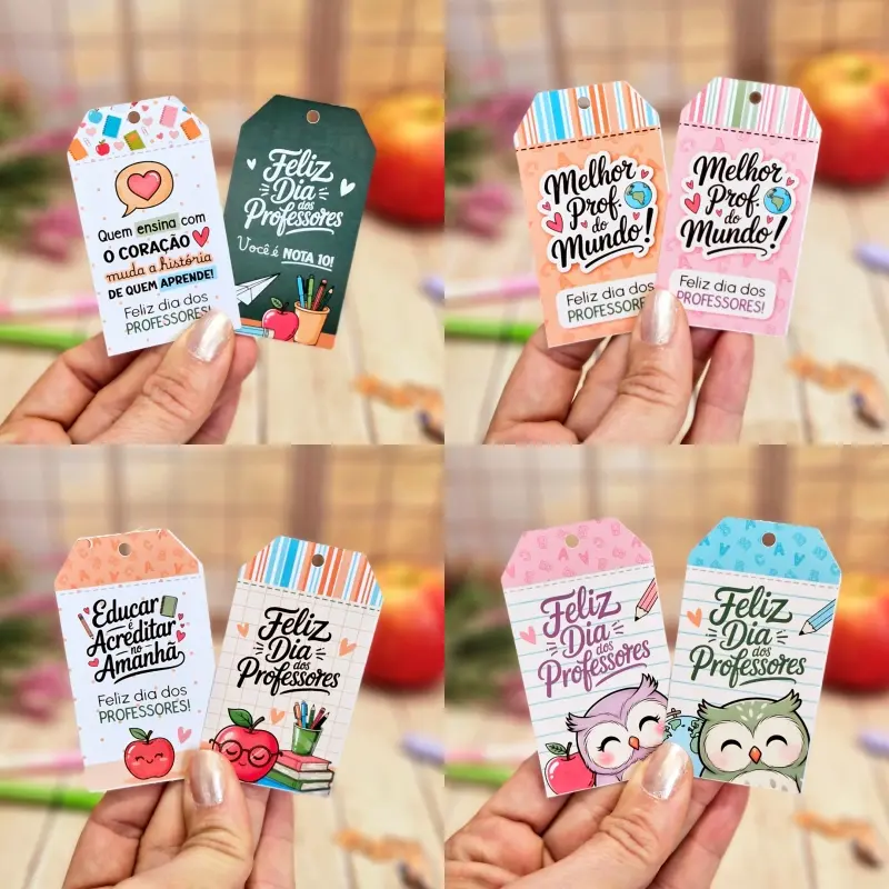 Celebre o Dia dos Professores com elegância e criatividade! Este conjunto de tags foi pensado para enfeitar presentes, lembrancinhas e materiais especiais, oferecendo um toque personalizado e afetuoso para homenagear educadores.